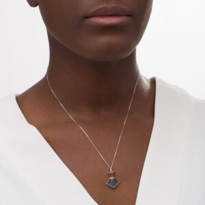 Garnet and Blue Sapphire Symbol Necklace in Sterling Silver and 10K Gold:Garnet and Blue Sapphire Symbol Necklace in Sterling Silver and 10K Gold