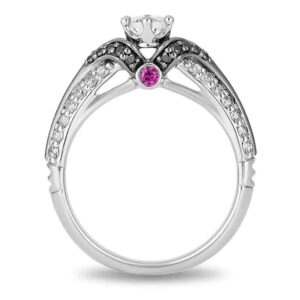 • Two rows of shimmering diamonds along the shank and two bezel-set bright red rubies under the gallery decorate this epic design.