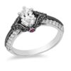 • Two rows of shimmering diamonds along the shank and two bezel-set bright red rubies under the gallery decorate this epic design.