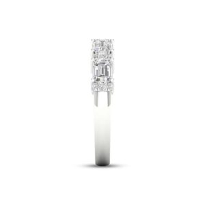 Perfect for stacking or for a chic look when worn alone, this beautiful ring showcases an open deconstructed band design set in iconic 14K white gold. Stunning emerald-cut diamonds alternate with duos of brilliant round diamonds for a total diamond weight of 1 carat.
