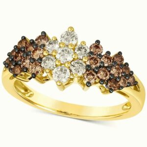 Brilliant round diamonds line multiple stacked and interwoven bands in this stunning, fashion-forward women’s ring from the collection. Fashioned in 14K yellow gold the total diamond weight of the ring is 5/8 carat.