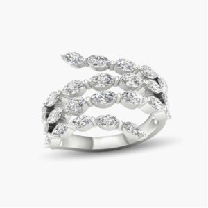 Boasting an impressive 2 carats in total diamond weight, this eye-catching diamond engagement ring is fahsioned in 10K white gold and features stunning round diamonds forming its pear-shaped center. Additional round diamonds halo the center and beam down the band with baguette diamonds in between.